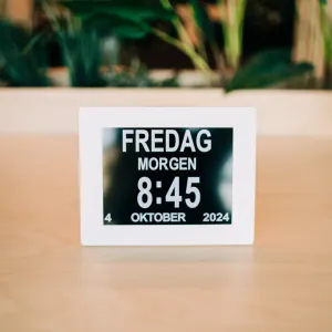 Kalender-klokken skiller seg ut med sin store 8″ skjerm, som tydelig viser tid, dato og del av dagen (morgen, formiddag, ettermiddag osv.) i stor og lettleselig skrift. Dette gjør den spesielt nyttig for eldre eller personer med nedsatt syn. Den har også fem justerbare alarmer for medisinpåminnelser, med mulighet til å tilpasse lydnivået – en uvurderlig funksjon for personer med hukommelsesutfordringer.